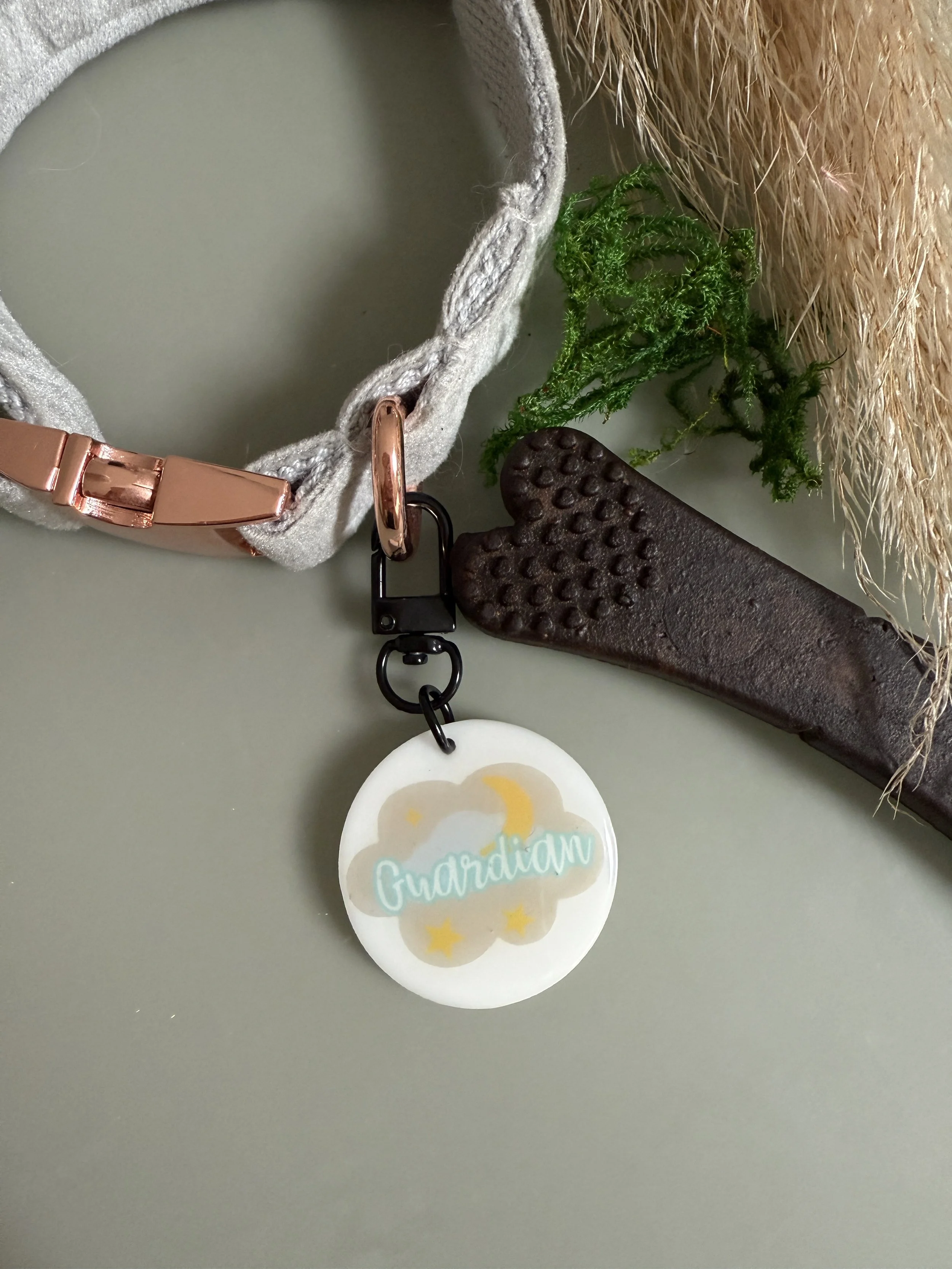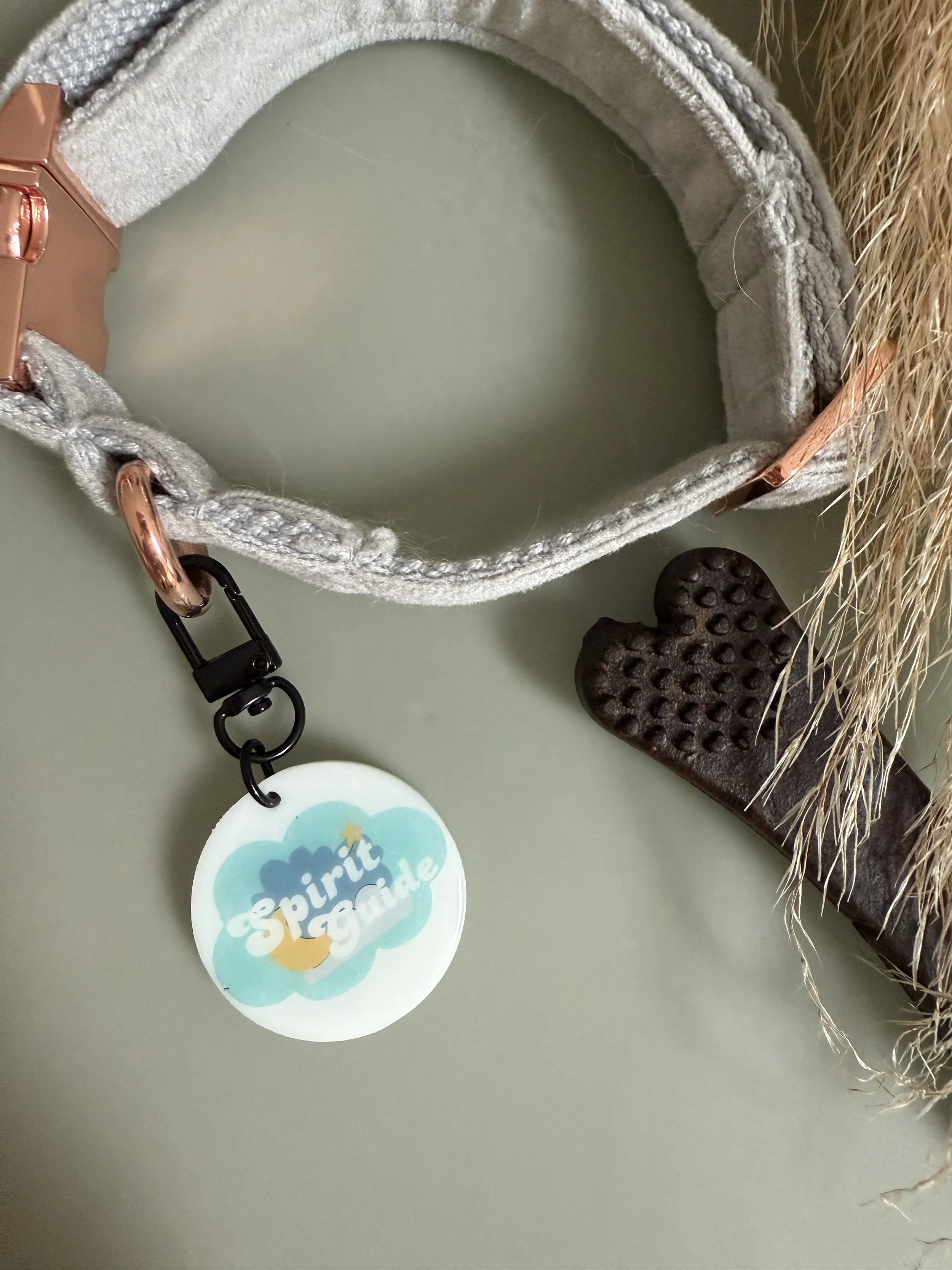 For the dog with a gentle heart and a calming presence, our Soul Healer collar charm is a beautiful tribute to their nurturing spirit. Featuring a serene tree background framed by soft white wings, this 1.5-inch white acrylic tag symbolizes strength, protection, and unconditional love. Waterproof sealed and finished with a black spring clasp, it’s made to accompany your soulful companion on every walk, cuddle, and adventure.